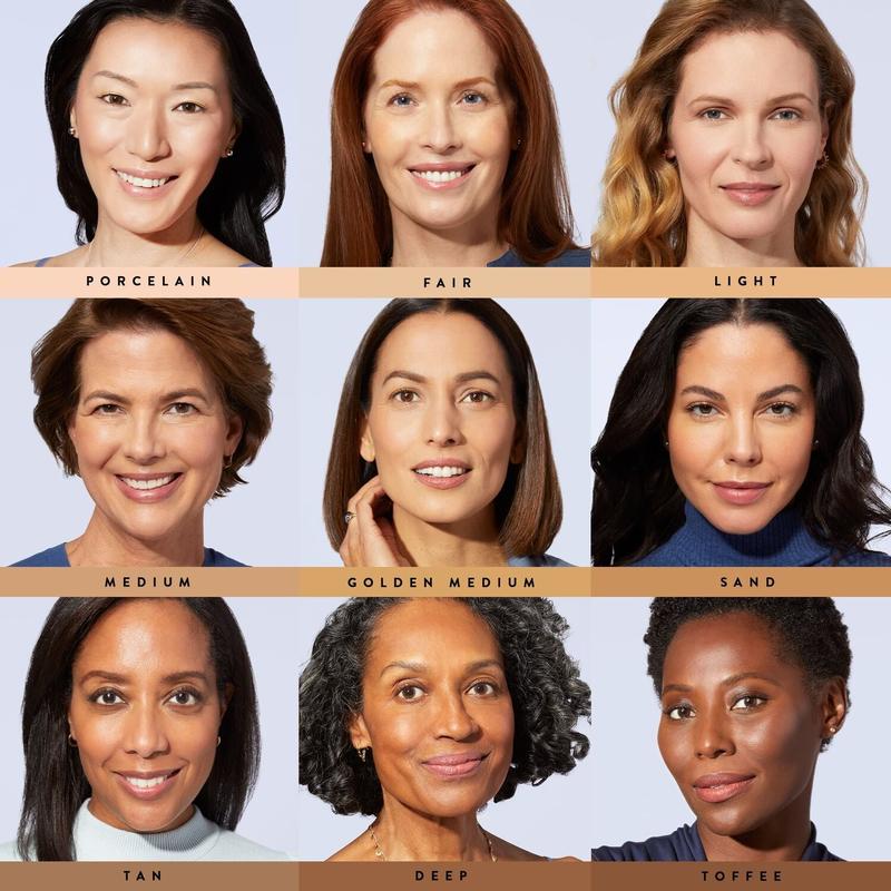 Porcelain · Fair · Light · Golden Medium · Medium · Sand · Tan · Deep · Toffee